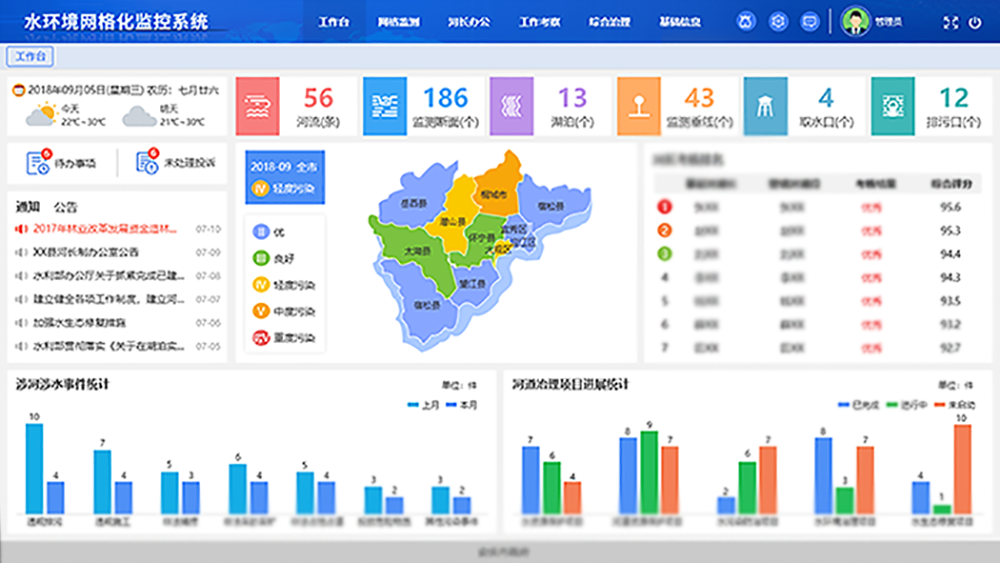 水環(huán)境網(wǎng)格化綜合管理系統(tǒng)基于地表水控制單元進(jìn)行環(huán)境摸底、問題識別和考核評估,實(shí)現(xiàn)控制單元的網(wǎng)絡(luò)化、數(shù)字化和空間可視化管理,提升環(huán)境管理的精細(xì)化水平,幫助水環(huán)管理部門改善水環(huán)境質(zhì)量。