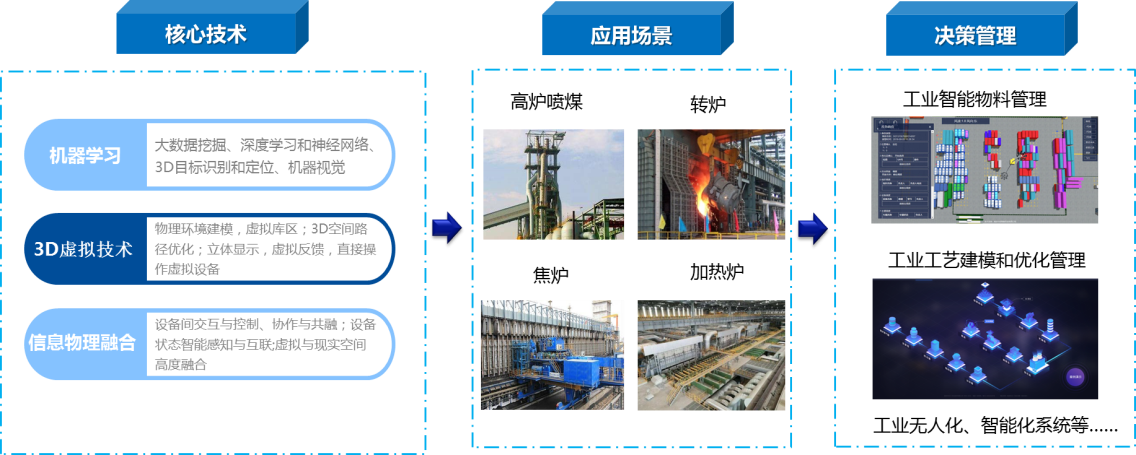 抓住“《中國(guó)制造2025》:制造業(yè)重點(diǎn)領(lǐng)域全面實(shí)現(xiàn)智能化”的窗口,在產(chǎn)業(yè)升級(jí)、勞動(dòng)力成本、節(jié)能環(huán)保核心驅(qū)動(dòng)力上重點(diǎn)布局,引入人工智能、大數(shù)據(jù)分析、機(jī)器人領(lǐng)域人才,以機(jī)器學(xué)習(xí)、3D虛擬技術(shù)、信息物理融合、云平臺(tái)、邊緣計(jì)算為核心技術(shù),形成一系列智能工廠應(yīng)用解決方案。包括,面向智慧物流推出智能物料管理系統(tǒng)、過(guò)程和產(chǎn)品智能缺陷檢測(cè)系統(tǒng)、3D物料建模系統(tǒng);面向優(yōu)化勞動(dòng)力推出工業(yè)無(wú)人化、智能化系統(tǒng);面向節(jié)能環(huán)保推出基于大數(shù)據(jù)的工藝建模和優(yōu)化解決方案等。